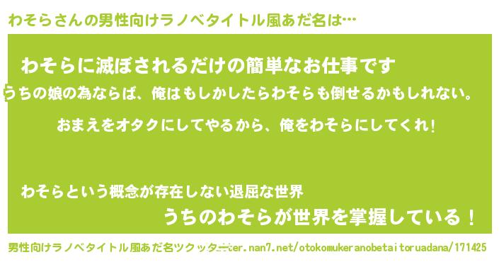 | 女子向けラノベタイトル風あだ名 | 『わそら夫妻のなれそめ』 |