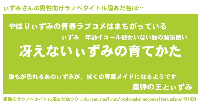 | ヒーロー風カッコイイあだ名 | 『ウルトラぃずみマン』『仮面ィズダー』 |