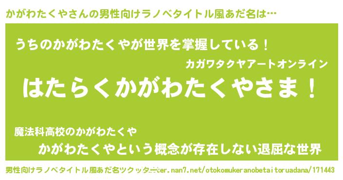 | 意味不明あだ名 | 『永久保存かがわたくや』 |