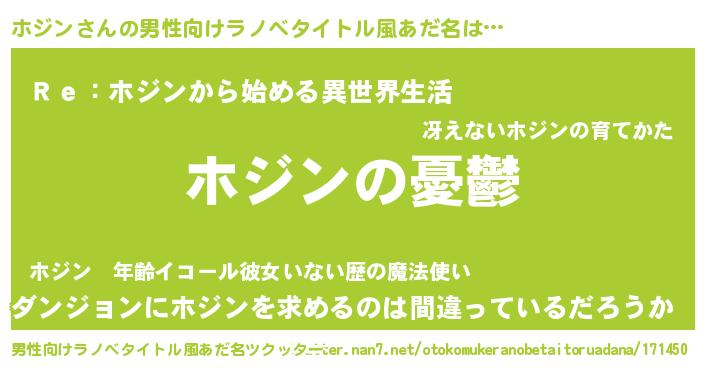 | 女子向けラノベタイトル風あだ名 | 『(仮)ホジンのやんごとなき事情』 |