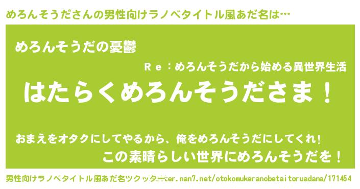 | 胡散臭い通販商品みたいなあだ名 | 『必ず成功する霊験あらたかなお札…その名も「めろんそうだ」』 |
