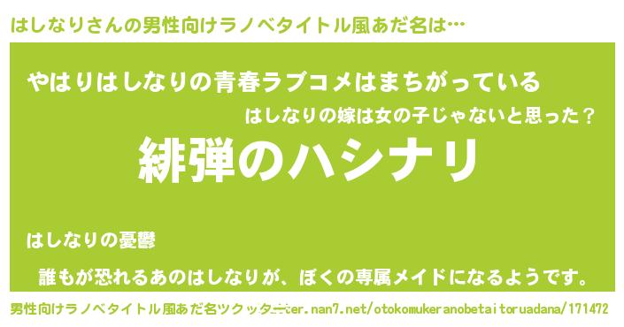 | 意味不明あだ名 | 『はしなりフォーエバー』『自称はしなり』 |