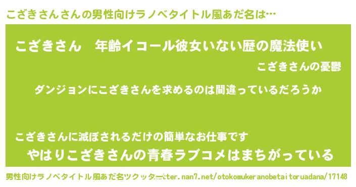 | 女子向けラノベタイトル風あだ名 | 『こざきさんの卵を拾いまして』 |