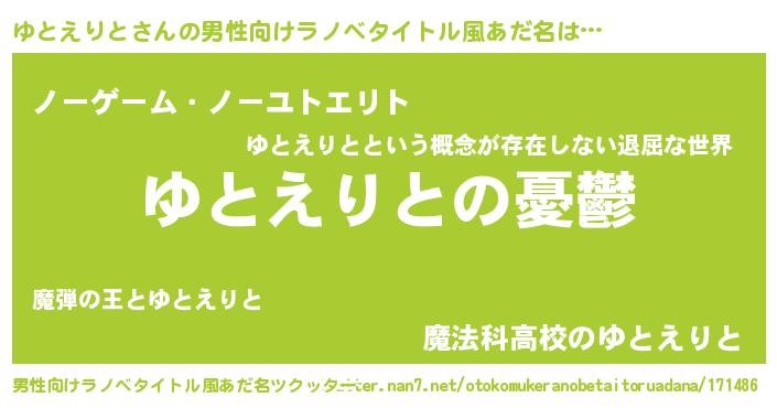 | 女子向けラノベタイトル風あだ名 | 『(仮)ゆとえりとのやんごとなき事情』 |