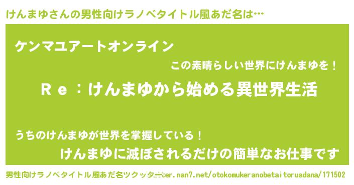 | 女子向けラノベタイトル風あだ名 | 『けんまゆストレイドッグス』 |