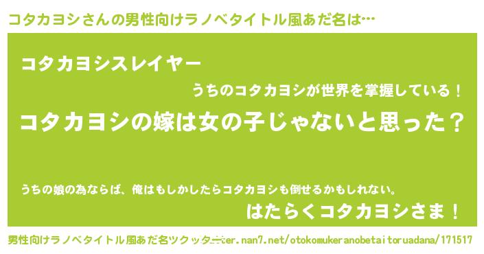 | 意味不明あだ名 | 『とにかく怪しいコタカヨシ』 |