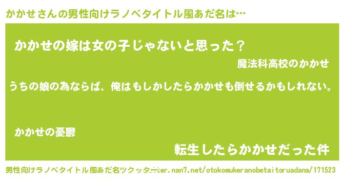 | 女子向けラノベタイトル風あだ名 | 『かかせの婚約者』『かかせアンティーク』 |