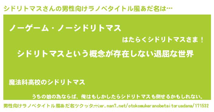 | 女子向けラノベタイトル風あだ名 | 『異世界で失敗しない100のシドリトマス』 |
