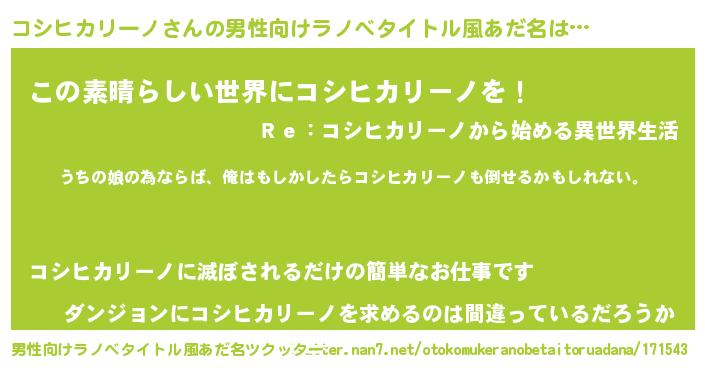 | 意味不明あだ名 | 『コシヒカリーノフォーエバー』 |