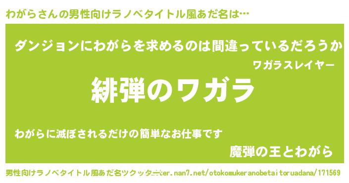 | 女子向けラノベタイトル風あだ名 | 『シンデレラわがら家の靴箱館』 |