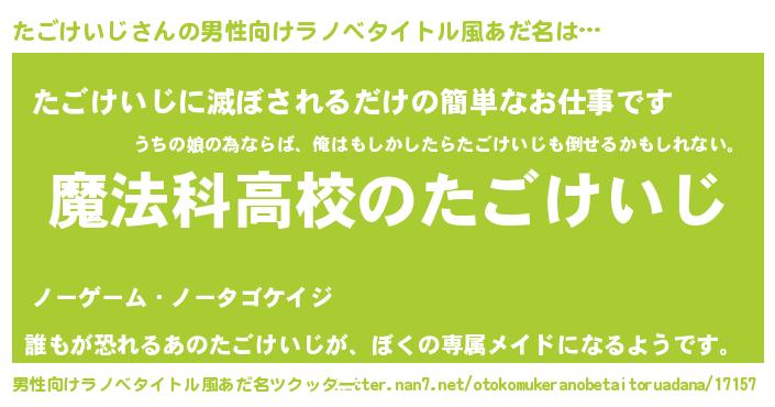 | 女子向けラノベタイトル風あだ名 | 『たごけいじなんてお断りですっ。』 |