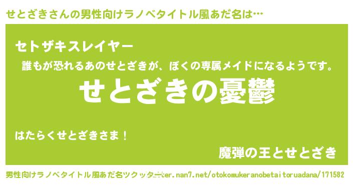 | 女子向けラノベタイトル風あだ名 | 『せとざき姫と円卓の騎士』 |