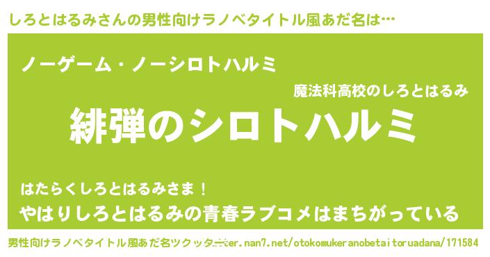| 女子向けラノベタイトル風あだ名 | 『シンデレラしろとはるみ家の靴箱館』 |