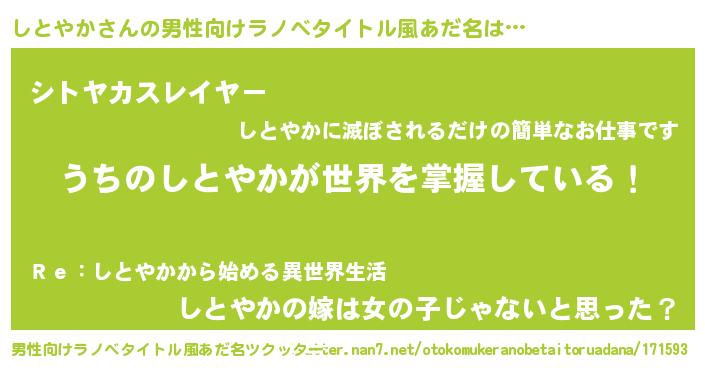 | ヘコむあだ名 | 『しとぷりん』『つくし』『しとにー』 |