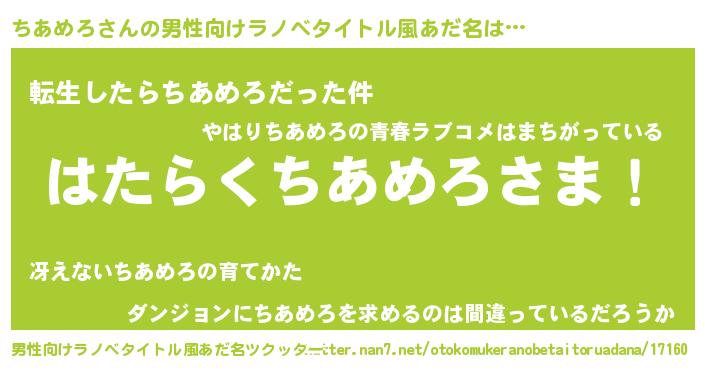 | 伝説のあだ名 | 『孤高の遊び人ちあめろ』 |