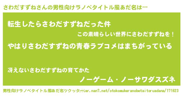 | 女子向けラノベタイトル風あだ名 | 『さわだすずねの雑貨屋さん』 |
