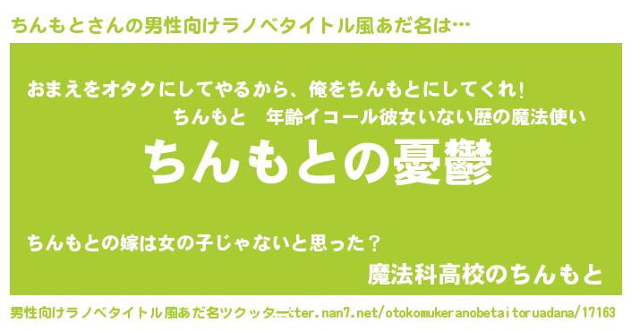 | 女子向けラノベタイトル風あだ名 | 『ちんもと姫と円卓の騎士』 |