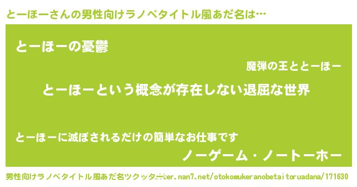 | ヘコむあだ名 | 『とーほー(笑)』『とーにー』『牛乳』 |