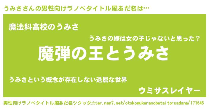 | ヒーロー風カッコイイあだ名 | 『仮面ウミダー』『サイバー戦士ウミサ』 |