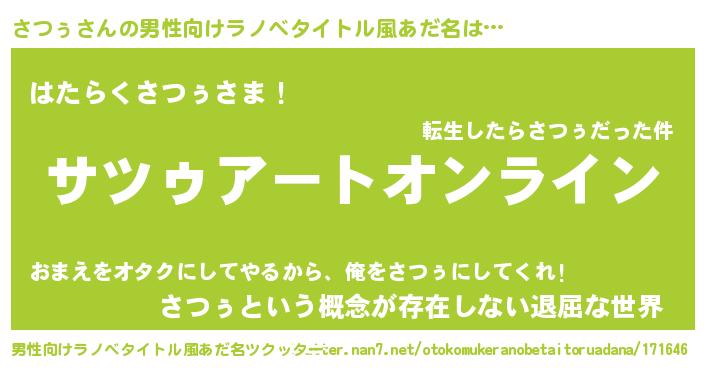 | 胡散臭い通販商品みたいなあだ名 | 『億万長者になれる霊験あらたかなお札…その名も「さつぅ」』 |