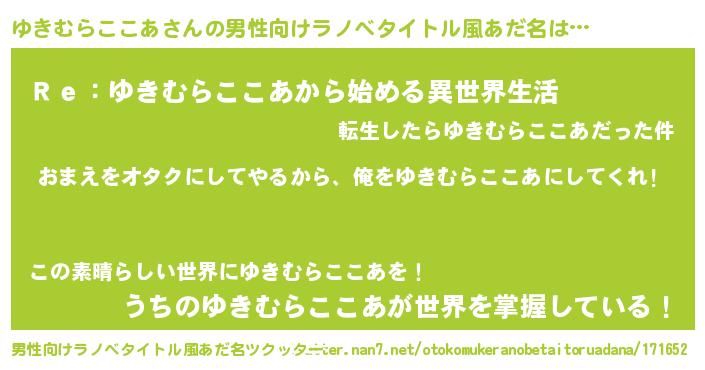 | ヒーロー風カッコイイあだ名 | 『正義の使者ゆきむらここあ』 |