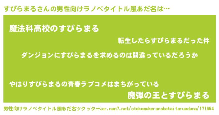 | 女子向けラノベタイトル風あだ名 | 『すぴらまるの卵を拾いまして』 |