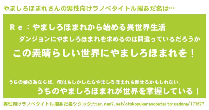 | 意味不明あだ名 | 『住所不定無職やましろほまれ(59歳)』 |