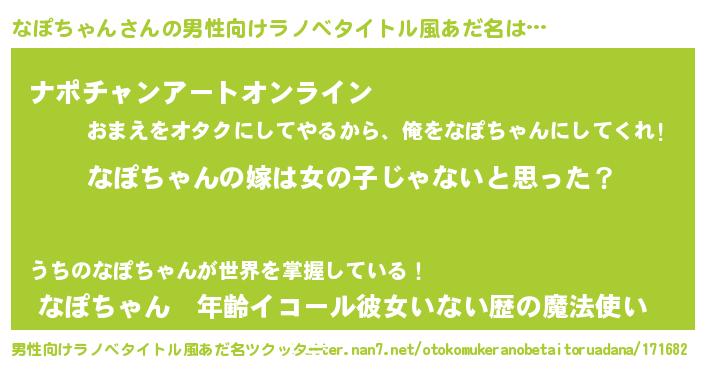 | 女子向けラノベタイトル風あだ名 | 『なぽちゃん様がみてる』 |