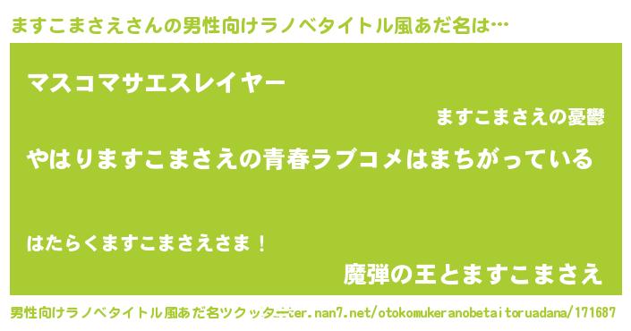| 女子向けラノベタイトル風あだ名 | 『ますこまさえの雑貨屋さん』 |