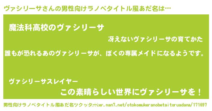ヴァシリーサさんの男性向けラノベタイトル風あだ名をツクッター!