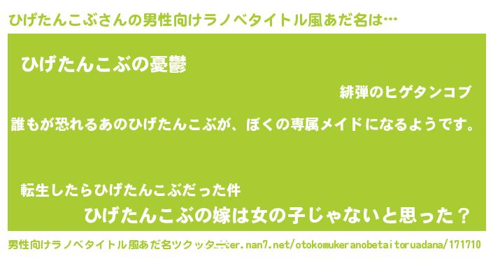 | 女子向けラノベタイトル風あだ名 | 『異世界でカフェひげたんこぶを開店しました。』 |