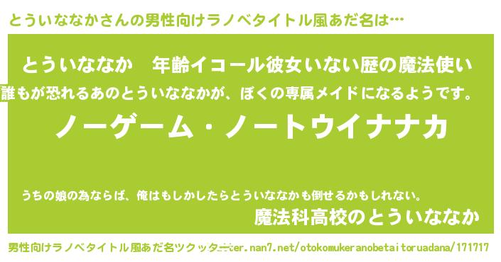 | ヘコむあだ名 | 『とういななか(小並感)』『牛乳』 |