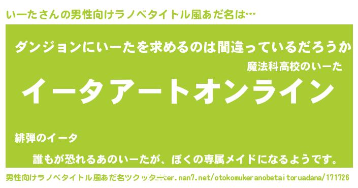 | 女子向けラノベタイトル風あだ名 | 『いーた姫と円卓の騎士』 |