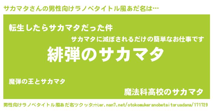 | ヒーロー風カッコイイあだ名 | 『超時空戦士サカマタ』『仮面サカダー』 |