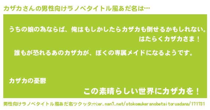 | ファンタジー風あだ名 | 『カザディッシュ』『エターナルカザカー』 |