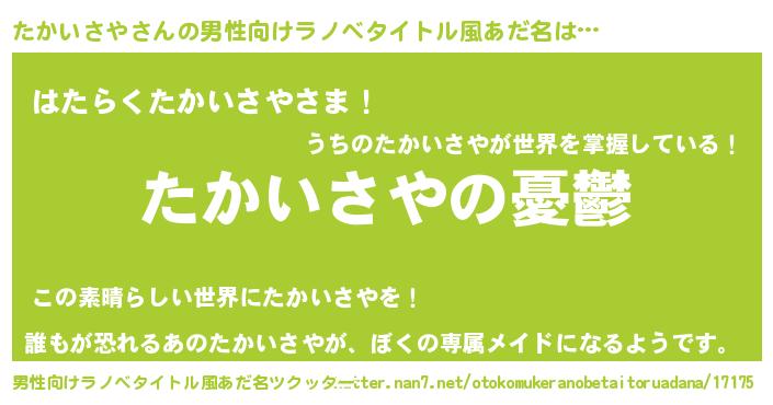 たかいさやさんの男性向けラノベタイトル風あだ名をツクッター!