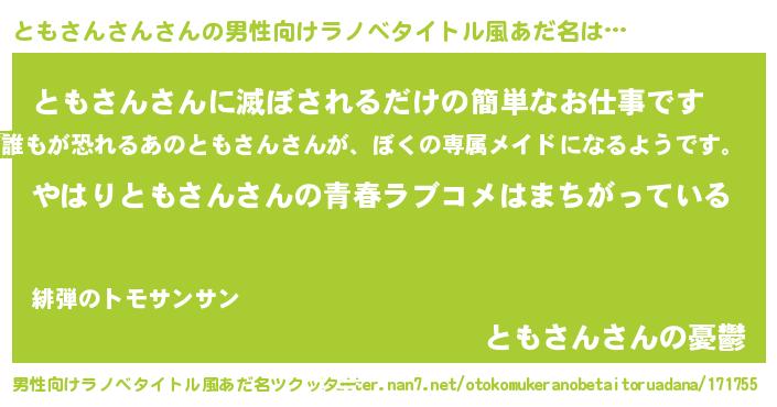| 女子向けラノベタイトル風あだ名 | 『ともさんさん伯爵の花嫁』 |