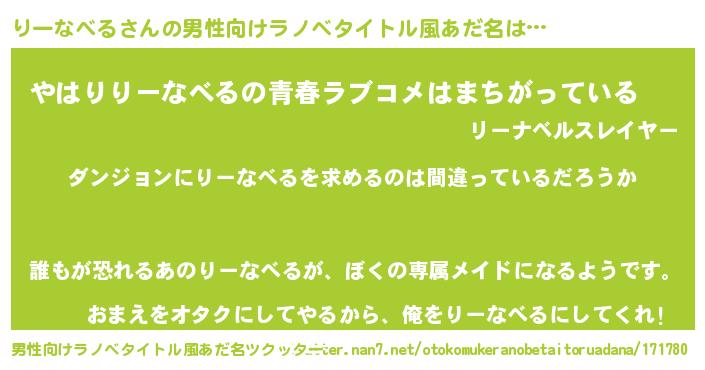 | 意味不明あだ名 | 『とにかく怪しいりーなべる』 |