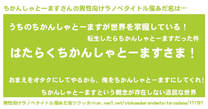 | 意味不明あだ名 | 『永久保存ちかんしゃとーます』 |