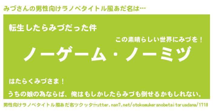 | ヒーロー風カッコイイあだ名 | 『慈愛の使者みづ』『ウルトラみづマン』 |