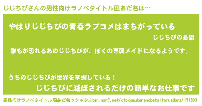 | 女子向けラノベタイトル風あだ名 | 『異世界でカフェじじちびを開店しました。』 |