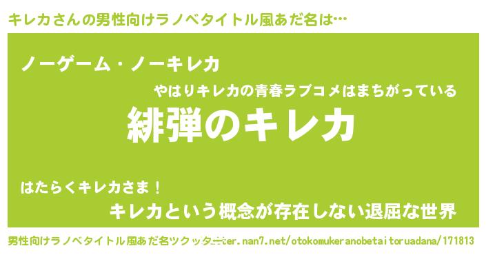 | ヒーロー風カッコイイあだ名 | 『友情の使者キレカ』『ネオキレカ』 |