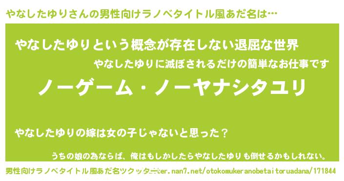 | 女子向けラノベタイトル風あだ名 | 『死神やなしたゆりの再婚』 |