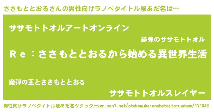 | 意味不明あだ名 | 『自称ささもととおる』 |