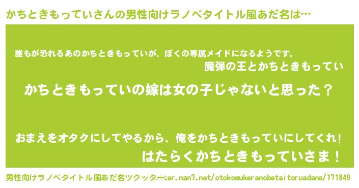 | 胡散臭い通販商品みたいなあだ名 | 『全米が絶賛したサプリメント…その名も「かちときもってい」』 |