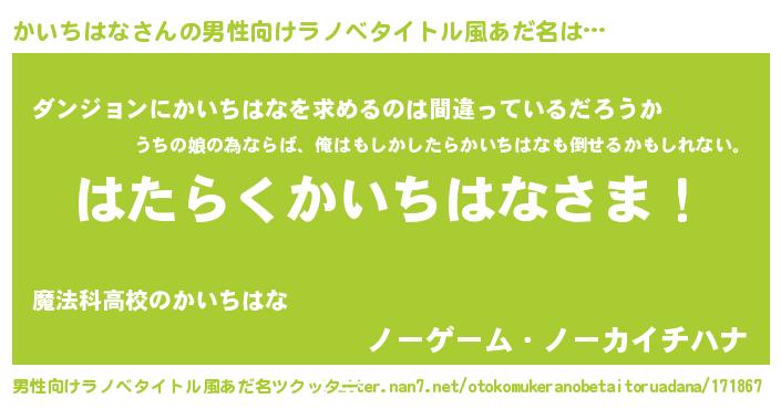 | 伝説のあだ名 | 『孤高の魔法使いかいちはな』 |