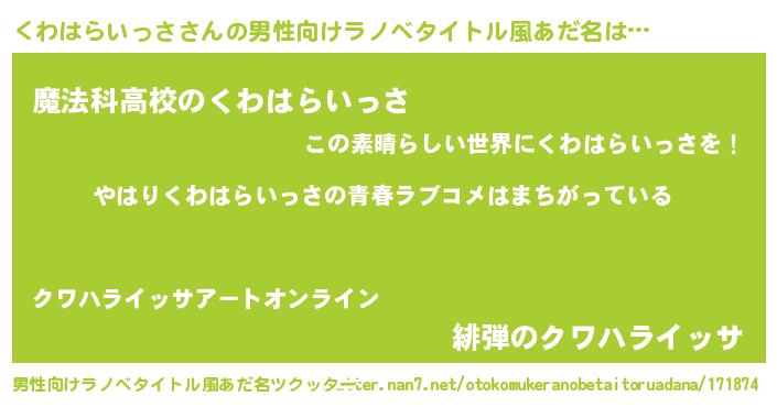 | 女子向けラノベタイトル風あだ名 | 『くわはらいっさの雑貨屋さん』 |