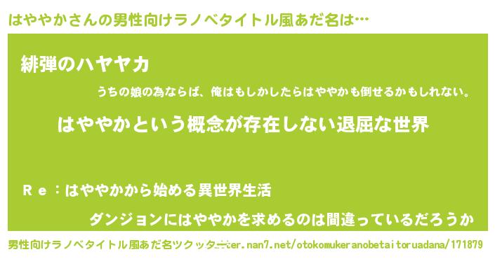 | ヘコむあだ名 | 『はややか(小並感)』『はやを』 |