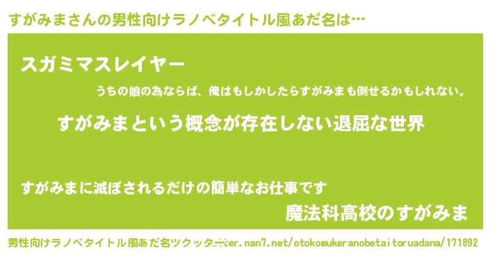 | 女子向けラノベタイトル風あだ名 | 『異世界で失敗しない100のすがみま』 |