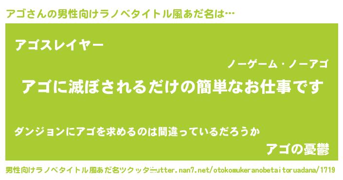 | 女子向けラノベタイトル風あだ名 | 『横柄アゴと宰相陛下』『アゴ恋絵巻』 |